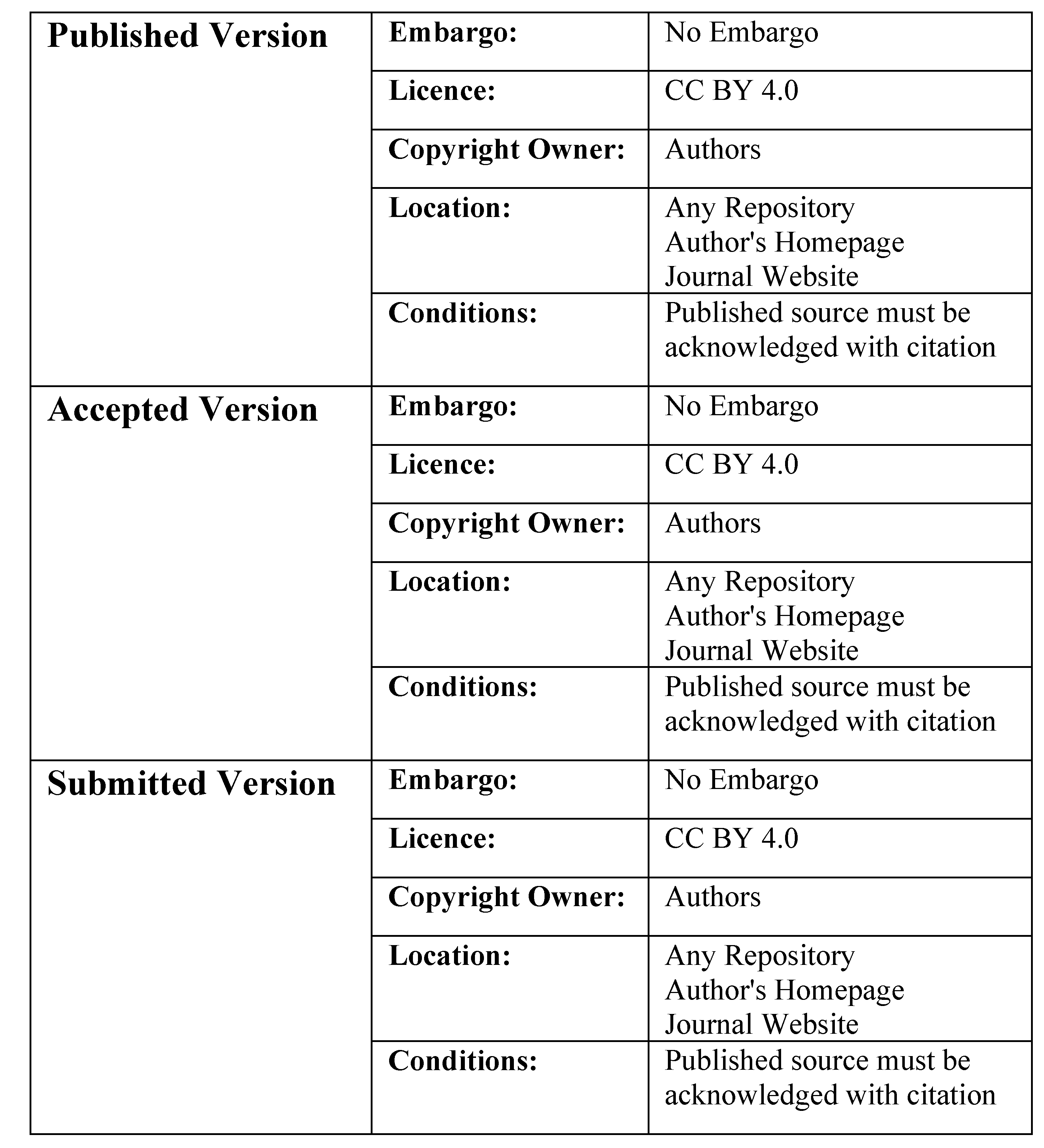 This policy is recorded in Sherpa Romeo - Sherpa Romeo is an online resource that aggregates and analyses publisher open access policies from around the world and provides summaries of publisher copyright and open access archiving policies on a journal-by-journal basis.